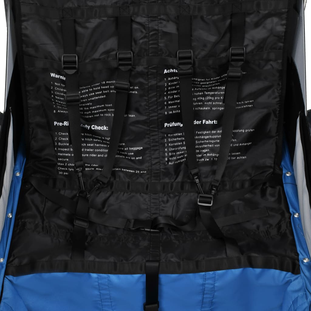 Această remorcă de bicicletă pentru copii are un cadru solid din oțel și este fabricată din țesătură oxford, fiind impermeabilă, durabilă și ușor de întreținut. Copertina rezistentă la intemperii și ecranul cu plasă protejează copiii de ploaie sau de soare, iar cele două geamuri laterale transparente oferă o panoramă superbă a drumului. Sistemul de hamuri cu 5 puncte de siguranță oferă protecție optimă copiilor dvs. Această remorcă de bicicletă pentru copii are culori de o vizibilitate ridicată și reflectoare pentru roți, pentru o vizibilitate maximă, la care se adaugă o frână de mână, pe roata din față, pentru o siguranță sporită la coborâre. Cele două buzunare interioare oferă un spațiu amplu de depozitare pentru alimente, jucării și alte obiecte necesare. Datorită racordului de siguranță rotativ, remorca va rămâne în poziție verticală, dacă bicicleta se răstoarnă.