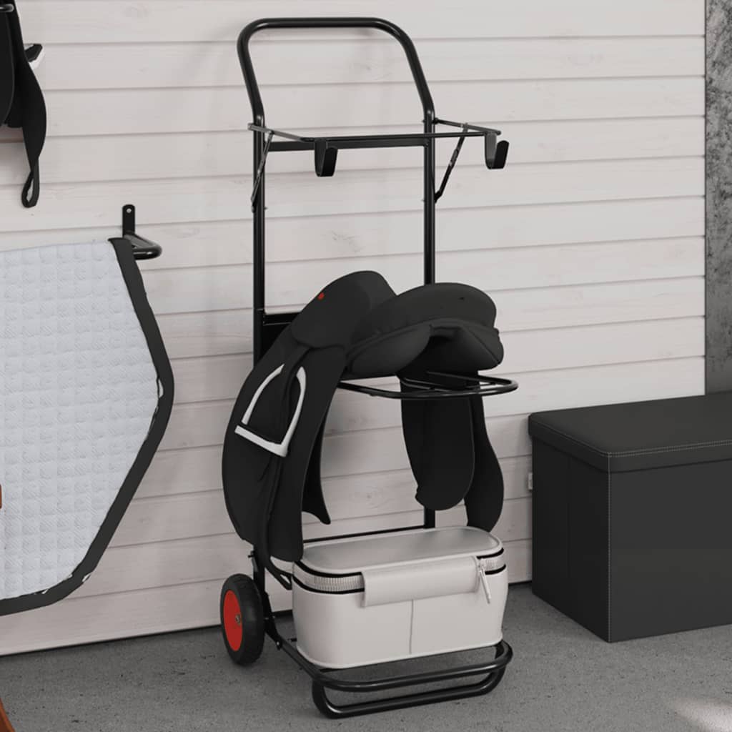 - Material de lungă durată: Acest cărucior pentru șa este fabricat din oțel, ceea ce asigură o construcție robustă și stabilă și o capacitate portantă puternică pentru echipamentul dvs. de călărie.