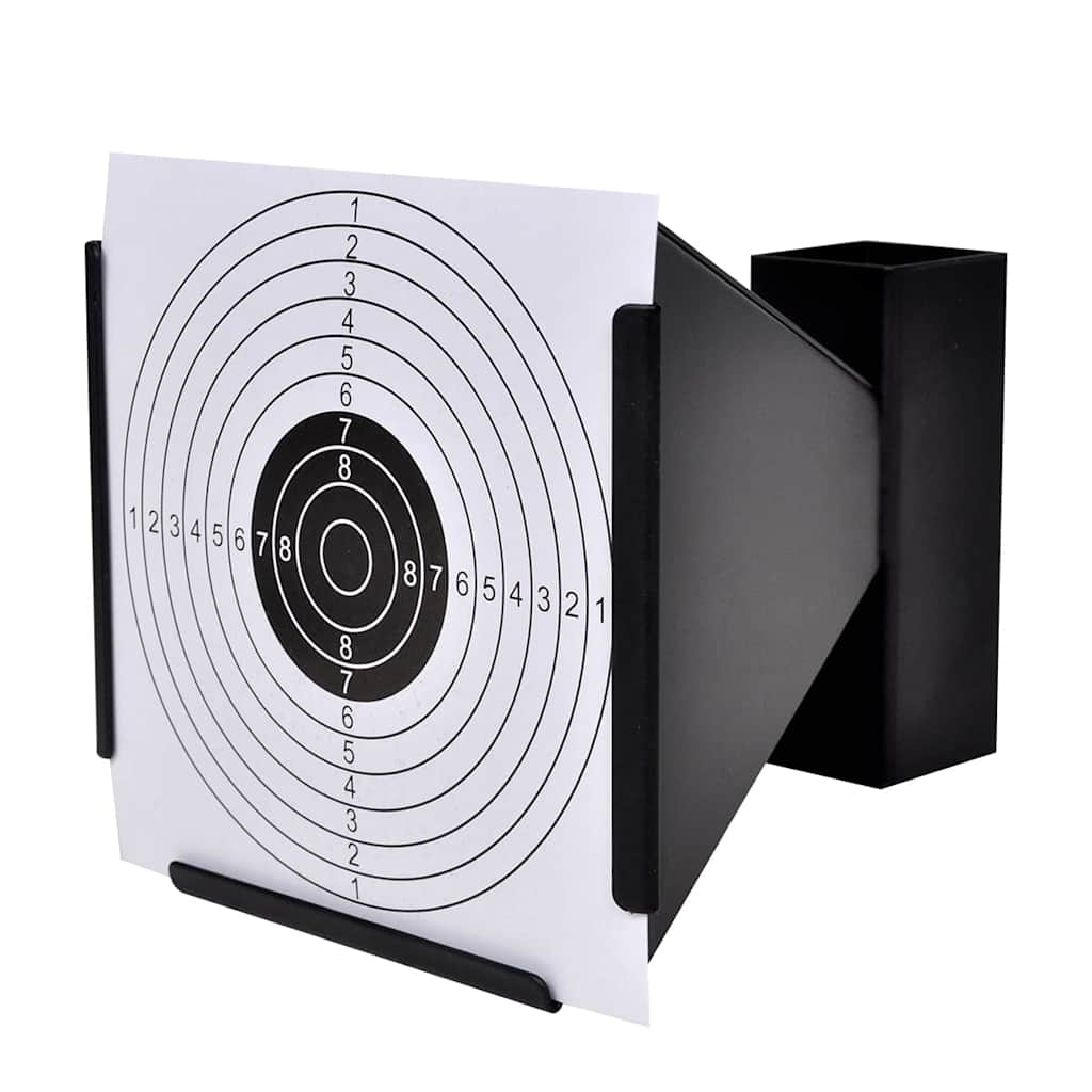 Acest suport de colectare a gloanțelor conține ținte de hârtie de 14 cm, iar designul său în formă de pâlnie ajută la reducerea ricoșeurilor. Acest suport de țintă prinde automat gloanțele, ceea ce face mai ușoară curățarea.