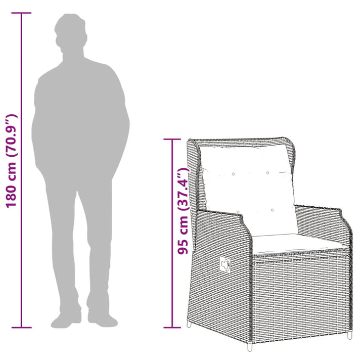 - Spătar reglabil: Acest mobilier de grădină are un mâner pe partea dreaptă. Puteți regla spătarul în orice poziție trăgând de mâner. De asemenea, puteți readuce rapid spătarul în poziția inițială cu ajutorul mânerului.