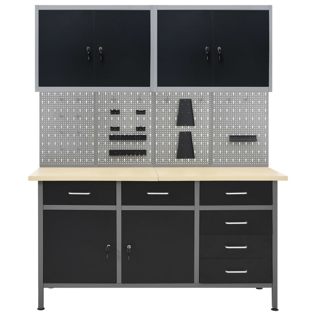 Acest set este o combinație de 1 banc de lucru, 4 panouri de perete și 2 dulapuri de perete, oferind o soluție de depozitare practică pentru atelierul și garajul dvs.