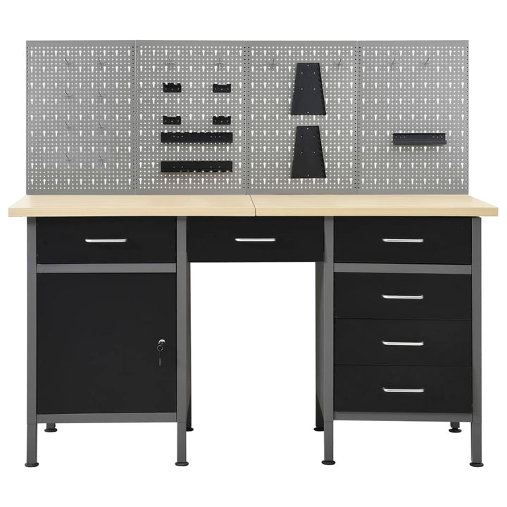 Bancul de lucru rezistent se remarcă printr-un spațiu amplu de depozitare și o capacitate de încărcare de 500 kg. Acest blat mare și robust oferă o platformă stabilă pentru toate lucrările dvs. de reparații. Bancul de lucru are 6 sertare, pentru a vă organiza corect uneltele, piesele și accesoriile precum șuruburi, cuie sau bandă adezivă. Toate sertarele sunt echipate cu mecanism cu rulment cu bile pentru alunecare lină. Există 2 rafturi cu o ușă care se poate încuia, unde pot fi găzduite cu ușurință mașini de găurit, tamburi de cablu și polizoare. În plus, picioarele sunt reglabile pe înălțime. Această stație de lucru este realizată din oțel premium și lemn prelucrat, fiind foarte robustă, durabilă și ușor de curățat. Este ușor de asamblat.