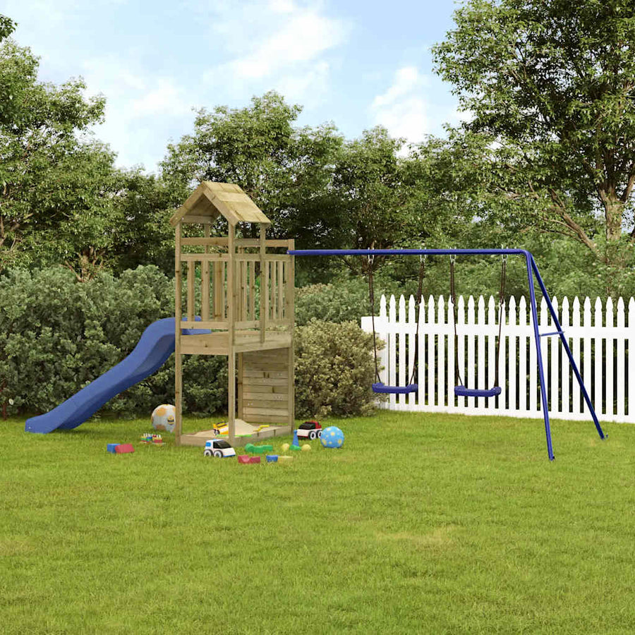 Doriți să le oferiți copiilor dvs. libertatea de a se juca acasă? Acest set de joacă pentru exterior, din lemn, vă transformă curtea într-un loc de joacă pentru aventuri imaginative!