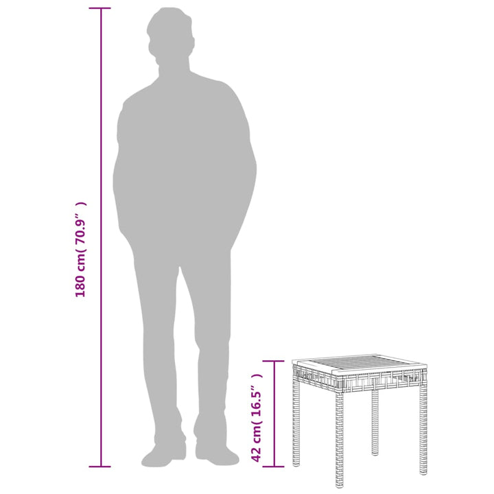 - Material: Ratan PE, oțel vopsit electrostatic, lemn masiv de acacia cu finisaj natural de ulei