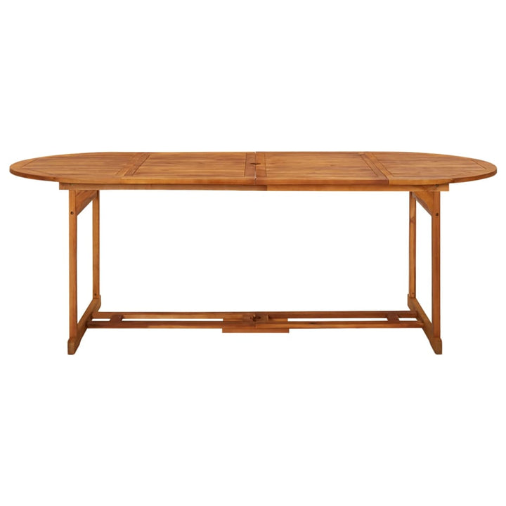 Această masă de exterior este realizată din lemn masiv de acacia, un lemn de esență tare cu granulație densă. Masa din lemn frumos proiectată este stabilă, durabilă și atrăgătoare. În plus, măiestria rafinată a creației și fibrele frumoase ale lemnului fac ca fiecare piesă de mobilier să fie ușor diferită de următoarele. Liniile sale simple emană un farmec rustic și natural. Această masă de grădină este o combinație excelentă de stil și durabilitate.