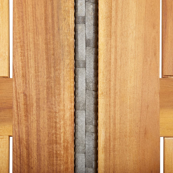 - Material: Ratan PE, oțel vopsit electrostatic, lemn masiv de acacia cu finisaj în ulei