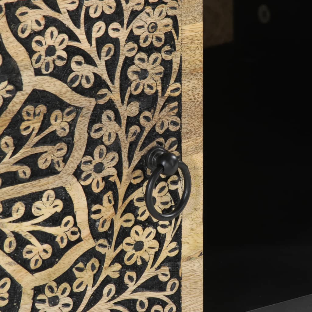 - Material: Lemn masiv de mango cu finisaj natural, lemn prelucrat, fier
