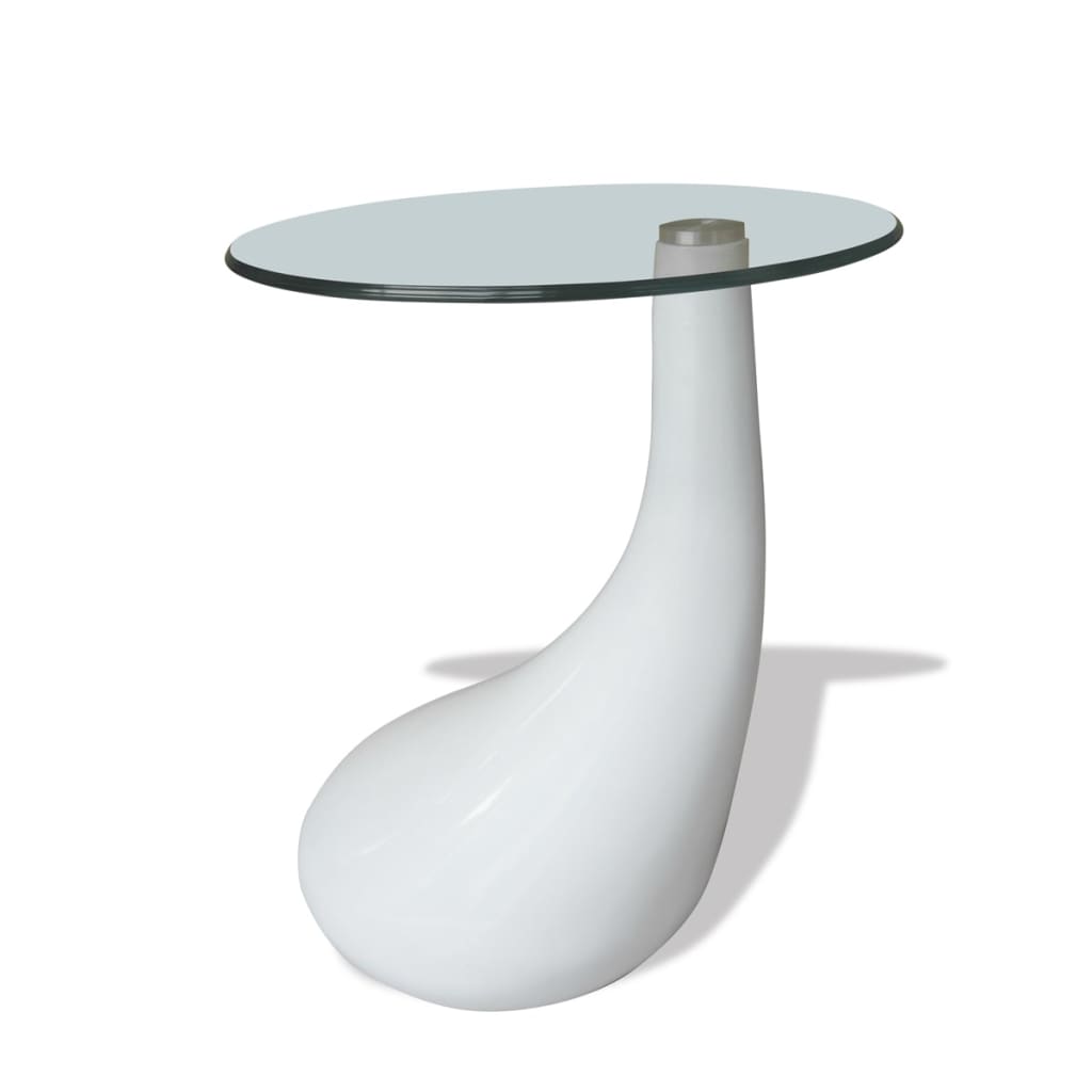 Baza unică, în formă de picătură de apă, în finisaj alb lucios, oferă un aspect elegant mesei. Se potrivește perfect cu o canapea sau sofa, în sufragerie, sau ca masă de capăt, în dormitorul dvs., pentru a vă așeza băuturile sau orice alte lucruri pe care le doriți la îndemână. Blatul este realizat din sticlă securizată, pentru siguranța dvs.