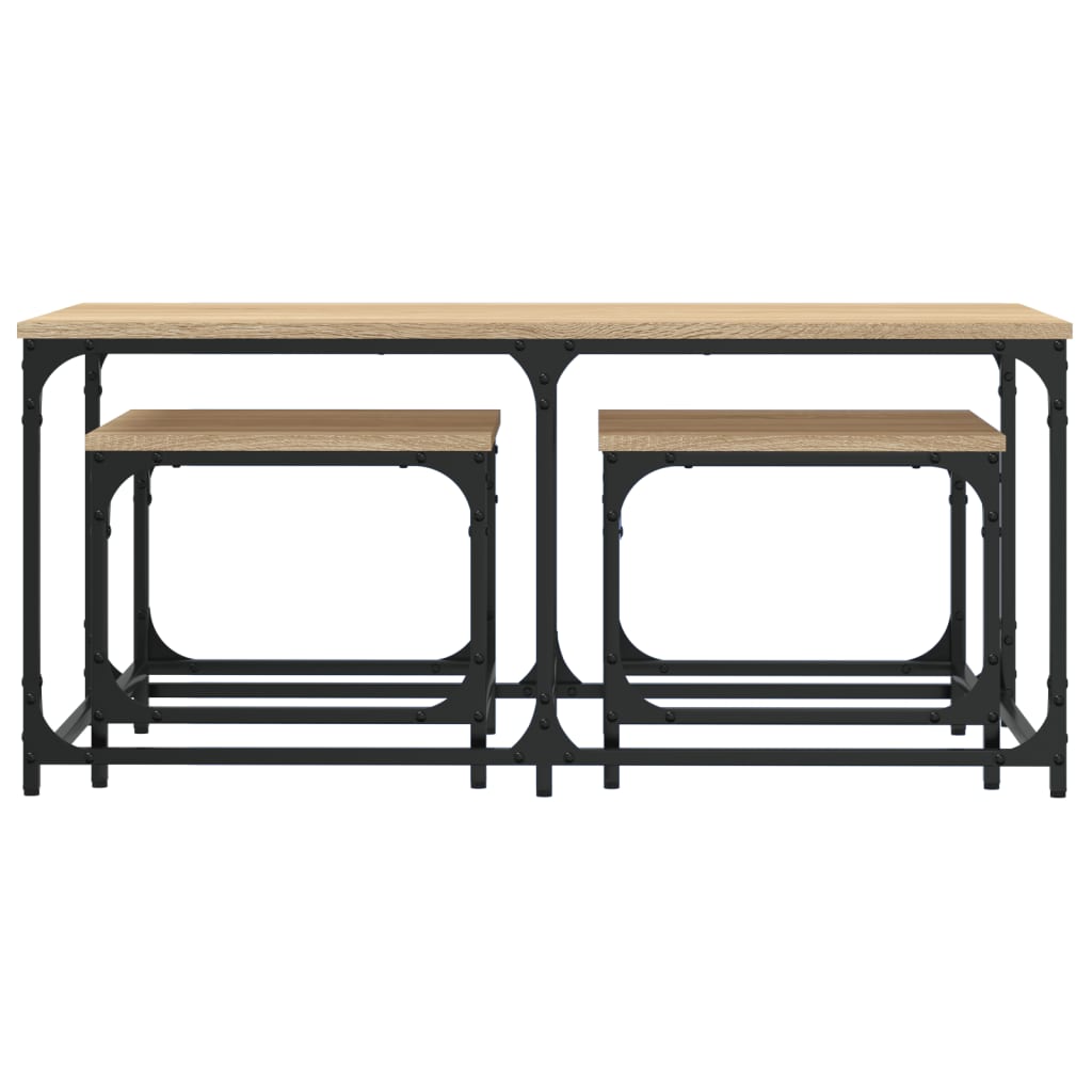 Setul nostru de măsuțe de cafea suprapuse, format din 3 piese, este alternativa perfectă pentru apartamentele mici sau orice zonă cu spațiu limitat. Datorită designului industrial, acest set de măsuțe moderne este un element de decor minunat pentru camera de zi, dormitorul sau biroul dvs.