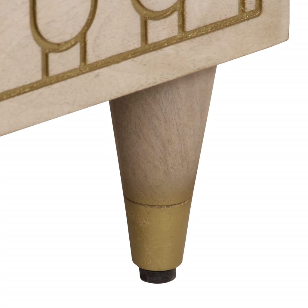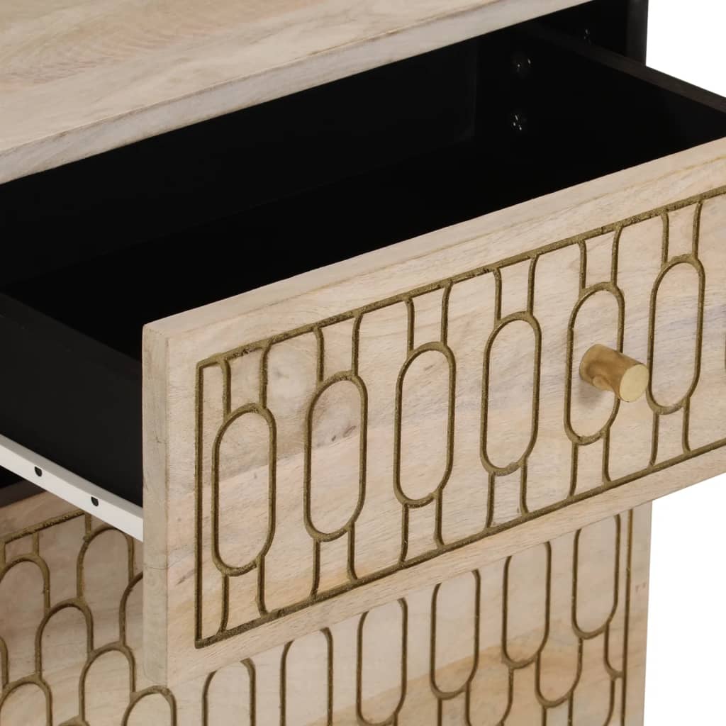 - Design sculptat manual: Această noptieră cu modele sculptate manual aduce luxul farmecului elegant in interiorul tău, fiind punctul focal al camerei tale.
