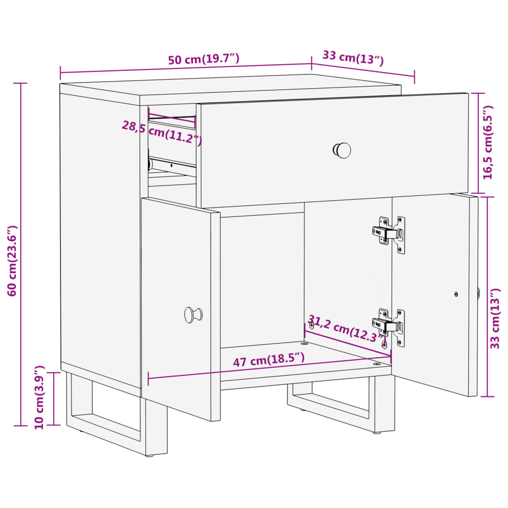- Material: Lemn masiv de mango cu finisaj maro acacia, MDF, fier