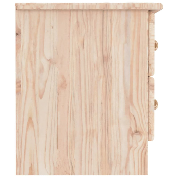 - Lemn masiv de pin: Lemnul masiv de pin este un material natural frumos. Lemnul de pin are fibre drepte, iar nodurile dau materialului originalitate și un aspect rustic. Realizată din lemn masiv de pin, noptiera este durabilă și robustă.