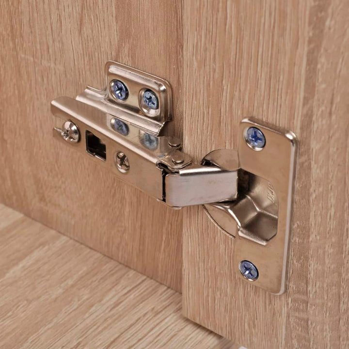 Dulapurile de perete și dulapul pentru chiuvetă cu două sertare oferă spațiu amplu pentru a vă depozita articolele de toaletă, produsele de înfrumusețare și diverse tipuri de articole mai mici. Piepteni, cosmetice, periuțe de dinți și pasta de dinți pot fi organizate pe rafturi, convenabil și la îndemână. Fabricat din lemn prelucrat de înaltă calitate, această unitate de toaletă este foarte robustă și durabilă.