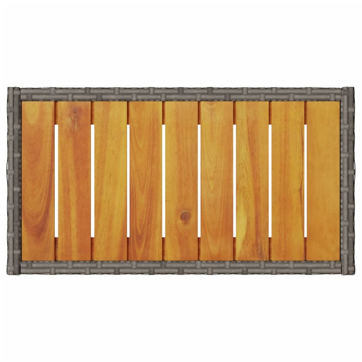 - Material: Ratan PE, oțel vopsit electrostatic, lemn masiv de acacia cu finisaj în ulei
