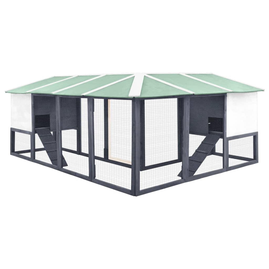 Cușca pentru iepuri are un design încăpător, cu două case și spațiu mare de joacă, din plasă de sârmă din oțel galvanizat, pentru a vă putea supraveghea animalele de companie și, de asemenea, pentru a preveni accidentele neașteptate. Cușca asigură monitorizarea iepurilor și le permite să primească suficient aer proaspăt. Cotețul de animale de companie este construit dintr-un cadru de lemn masiv, fiind stabil și durabil. De asemenea, acoperișul înclinat este realizat din material rezistent la apă, care asigură protecție împotriva ploii. Cuștile creează spațiul perfect de odihnă. În plus, rampa antiderapantă leagă parterul de nivelul superior.