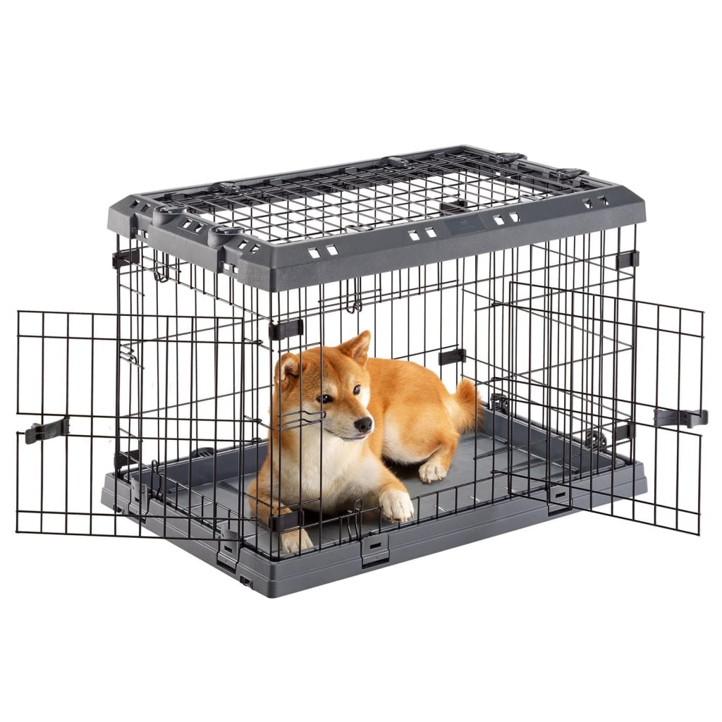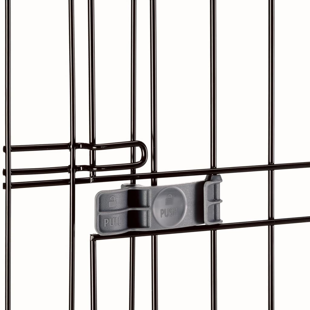 Ajută la deprinderea cățelușului să folosească toaleta acasă, creează un spațiu sigur în mediul casei, asemănător unui bârlog, și îl poate transporta pe prietenul dvs. credincios în portbagajul mașinii. Deoarece este echipată cu un panou despărțitor, cușca pentru animale de companie se adaptează cu ușurință la creșterea cățelușului. Cușca este robustă și solidă. Este confecționată din plasă metalică cu rame din plastic si o bază cu grile mari de ventilație care permit o vizibilitate excelentă pentru prietenul dvs. În plus, acoperișul poate fi complet deschis și îndepărtat, fiind practic deoarece vă permite să vă alintați câinele. Ușile, consolidate cu o încuietoare dublă de siguranță, sunt mari și permit accesul facil la prietenul dvs. Baza din plastic asigură prietenului dvs. un mediu uscat și stabil, datorită sistemului special de scurgere și suprafeței antiderapante. În plus, partea inferioară este dotată cu piciorușe de cauciuc antiderapante care mențin cușca ferm pe podea în timpul utilizării.
