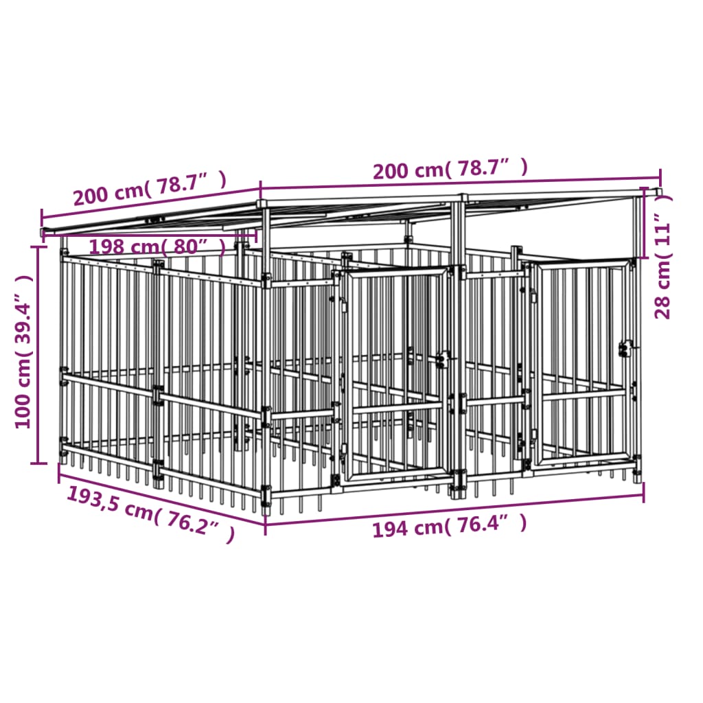 - Acoperiș util: Acoperișul acestui țarc pentru câini oferă protecție împotriva soarelui, ploii, zăpezii, precum și a altor condiții meteorologice.