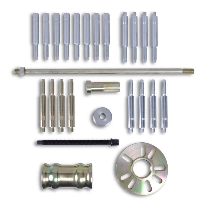 Acesta este un set de extractoare de butuci de roată pentru sarcini grele, format din 30 de piese, pentru îndepărtarea butucilor cu știfturi greu de scos și a tamburilor de frână de pe autovehicule și vehicule comerciale ușoare.