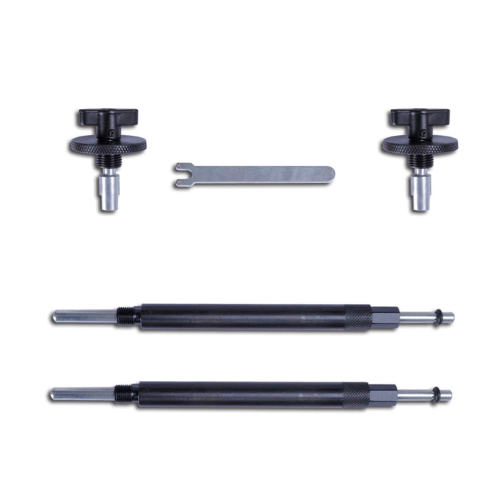 Setul complet include: 2x adaptor pentru înălțimea pistonului - Pereche OEM 1 860 992 000, 2x unelte de blocare a arborelui cu came- OEM 1 860 985 000 și 1x cheie de reglare a tensiunii-OEM 1 860 987 000.