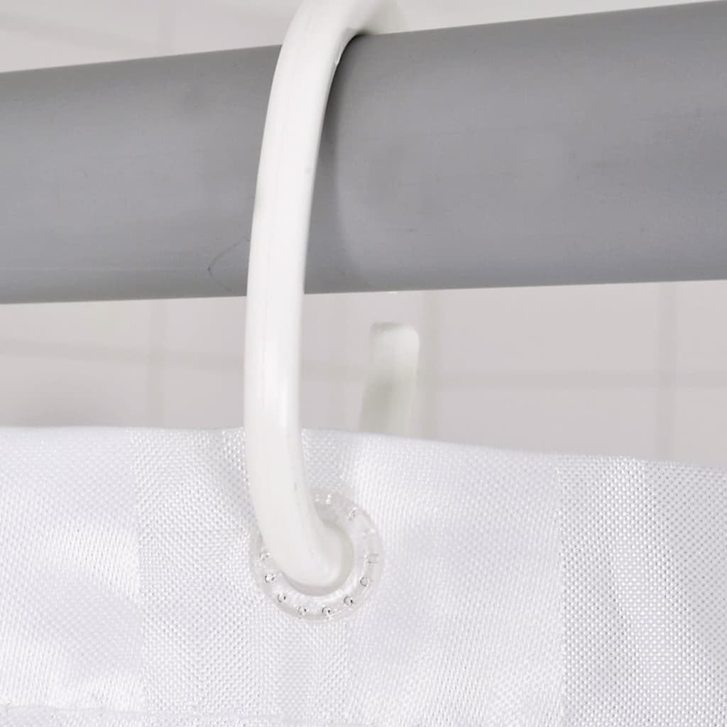Această perdea de duș este realizată din poliester 100% de înaltă calitate, care este rezistent la apă și deosebit de practic. O bandă este cusută în tivul inferior, pentru ca perdeaua de duș să cadă frumos și să creeze o experiență de duș mai plăcută. Perdeaua se poate spăla la mașina de spălat la temperaturi de până la 60°C și poate fi călcată la temperaturi mici. Este foarte ușor de montat: perdeaua de duș este echipată cu ocheți din plastic și poate fi agățată ușor și convenabil cu inele de perdea de duș (nu sunt incluse).