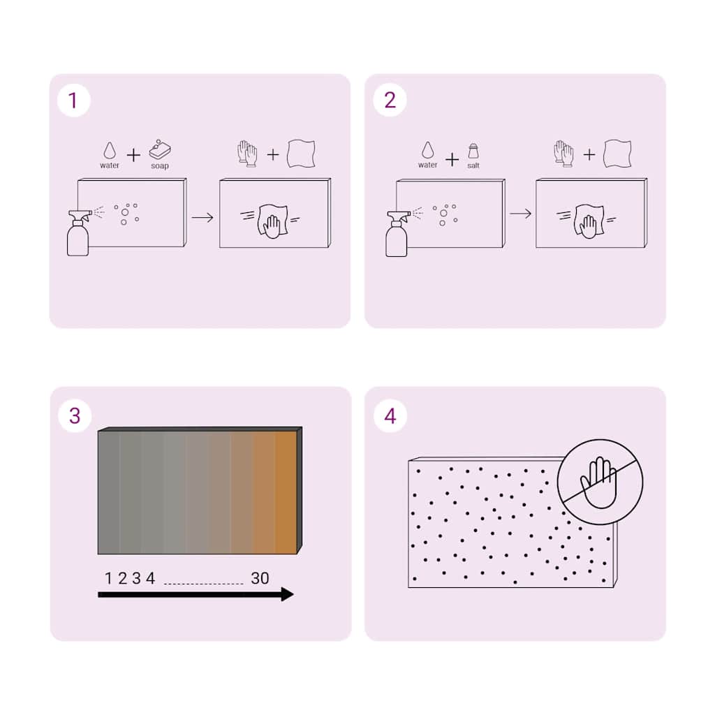 - Acest produs nu este încă ruginit și are o culoare normală de metal când îl primiți, dar rugina se va dezvolta în timp. Puteți accelera procesul de ruginire prin pulverizarea cu apă cu săpun și apă sărată. Pentru a vă păstra hainele fără pete, evitați contactul cu stratul de rugină care se dezvoltă.