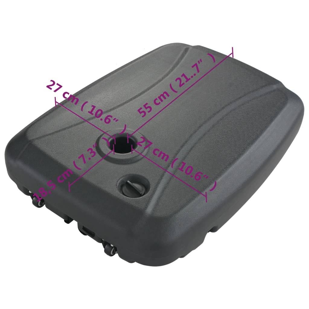 Realizzato in plastica resistente, con una capacità di carico dell'acqua di circa 60 kg e con un peso di circa 120 kg, questo supporto per l'ombrello assicura una durata di vita prolungata.