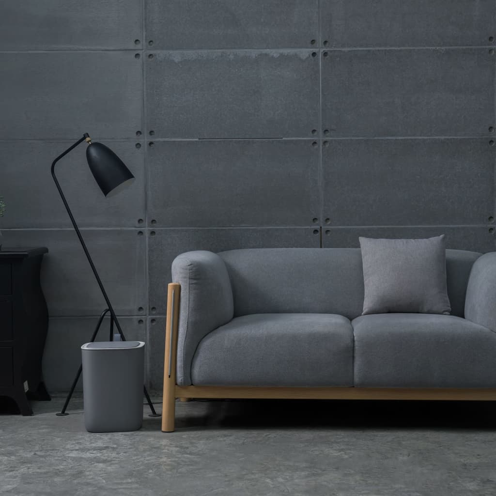 Questo divano grigio da 12 litri Morandi Smart della EKO è un divano grigio in plastica, nelle tende, con il sensore e il pannello tattile.