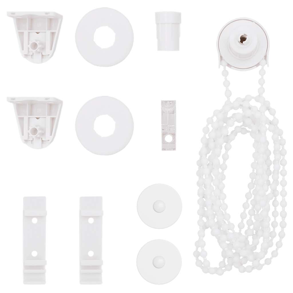 Livrarea include 1 x șină superioară de aluminiu de 40 cm cu 37 x material cu imprimeu tip zebră de 100 cm, 1 x șină superioară de 40 cm, 1 x șină inferioară grea de 40 cm, 2 x cârlig, 2 x suport, 1 x suport pentru lanț, 2 x garnitură și 1 x lanț cu bile.
