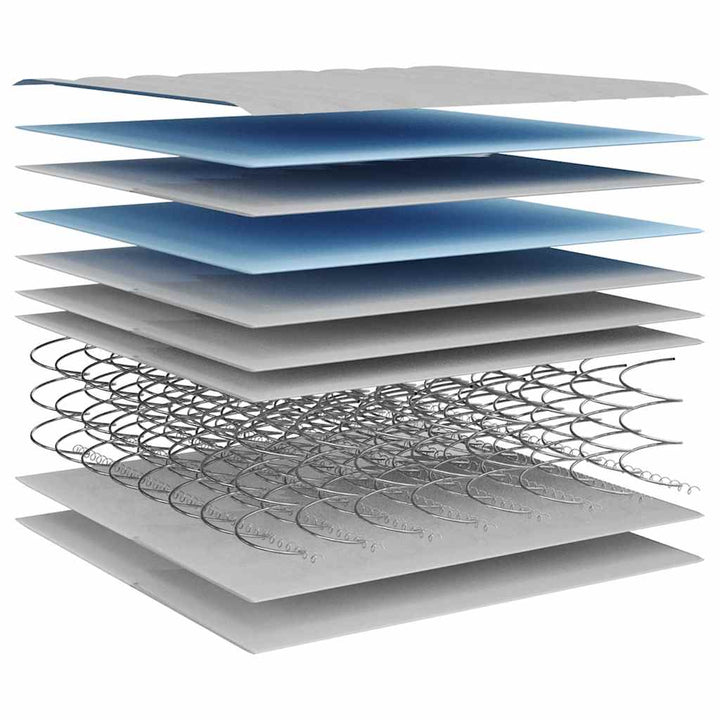 - Confort sporit: Salteaua cu arcuri este proiectată cu mai multe straturi, inclusiv un strat de spumă, un strat tampon de izolație și un strat de arcuri. Această combinație oferă o senzație moale spre medie și un confort de leagăn, pentru toate pozițiile de somn. În plus, salteaua absoarbe eficient zgomotul și vibrațiile cauzate de răsturnare și întoarcere, asigurând un somn liniștit și netulburat.