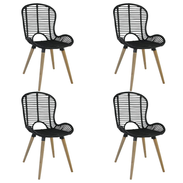 Datorită șezutului și spătarelor din ratan natural, scaunele sunt rezistente la apă și ușor de curățat. Picioarele din lemn asigură stabilitate și durabilitate setului de mobilier, oferindu-i un stil vintage. Aceste scaune se vor potrivi oricărui decor și sunt ușor de asamblat. Pachetul de livrare include 4 scaune de bucătărie.