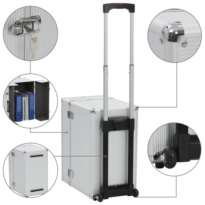 Realizzato in legno, in ABS e alluminio, questo carrello è resistente all'acqua e durevole. Este progettato con un compartimento marino per l'uso di documenti, contenitori e mappa A4. Questa valigia pilota è dotata di 2 ruote staccabili e 1 braccio telescopico per l'uso del trasporto. Inoltre, il carrello può essere preso in considerazione da 2 che sono inclusi, per farti fare un lavoro personale in sicurezza sulla durata del riscaldamento!