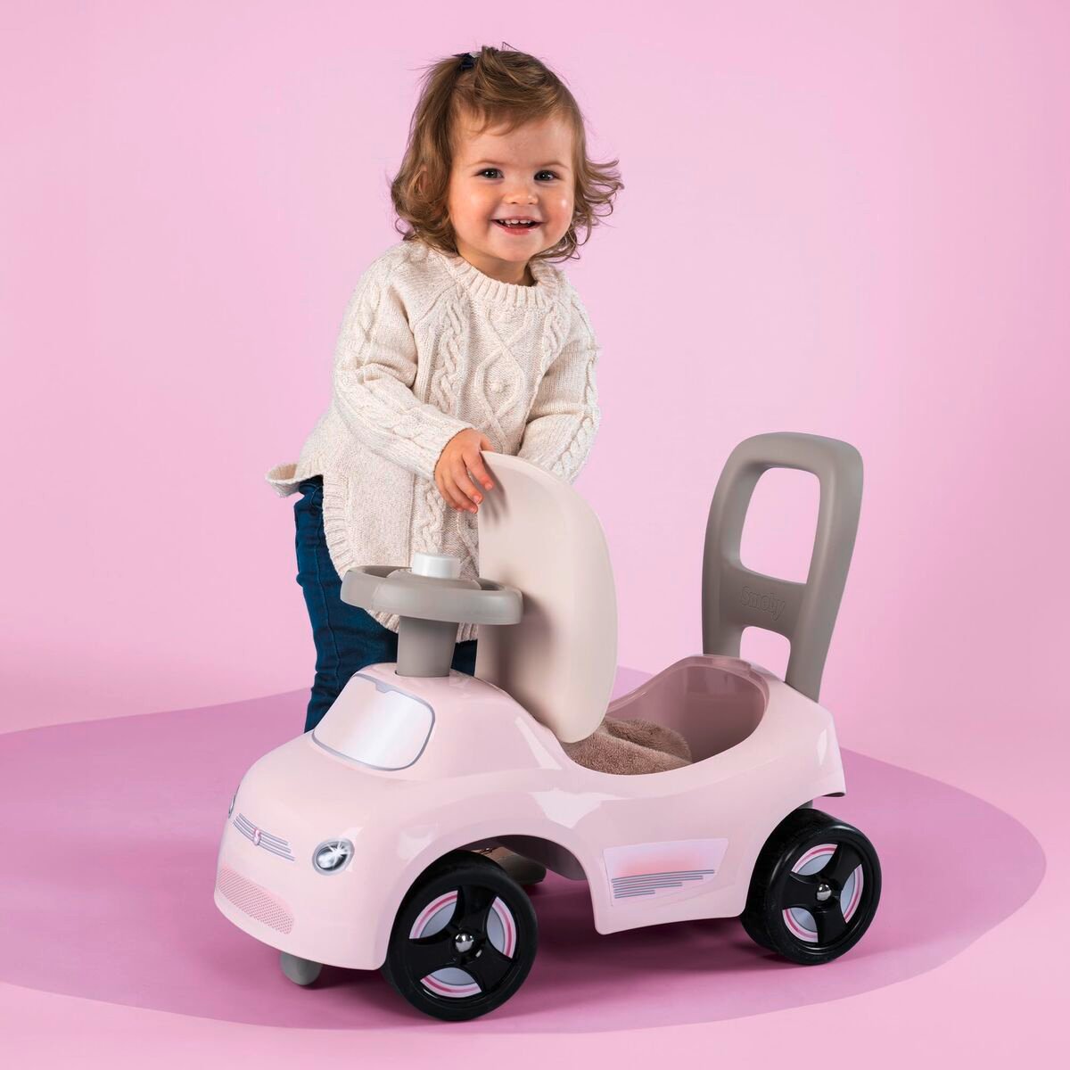 Smoby premergătorul este un vehicul conceput special pentru copii de la un an, ideal pentru dezvoltarea motricității și autonomia în primii pași. Fabricat în principal din plastic rezistent, structura sa combină ușurința cu durabilitatea, adaptându-se activității zilnice a celor mici. Acest premergător are un design de tip căruț pentru bebeluși care oferă stabilitate și siguranță, permițând copilului să se deplaseze ușor și încrezător. Este disponibil într-o combinație atractivă de culori negru și roz (rose), potrivite pentru gusturi diferite și cu un aspect modern și distractiv. De asemenea, include o funcție de sunet care stimulează simțurile și face experiența mai interactivă pentru copil. Originea sa din China garantează o producție conformă cu standardele internaționale de calitate pentru acest tip de jucării. Produsul este gândit să se adapteze creșterii naturale a copiilor, promovând echilibrul și coordonarea prin joc activ. În concluzie, premergătorul Smoby reprezintă o opțiune accesibilă și practică pentru părinții care caută un prim vehicul de susținere pentru copii mici, combinând siguranța, funcționalitatea și designul atractiv.