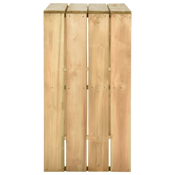 Este fabricată din lemn de pin tratat, fiind durabilă și rezistentă la coroziune. Prin urmare, masa de grădină este potrivită pentru utilizare în aer liber. Designul elegant al mesei de bar o face un accesoriu mereu la modă pentru gradina dvs. În plus, poate fi folosită și în interior.