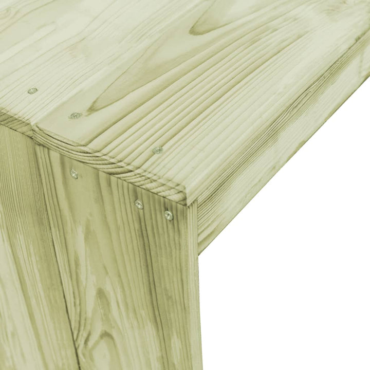 Realizată din lemn de pin tratat de calitate superioară, masa de bar este rezistentă la putrezire, foarte durabilă și potrivită pentru utilizare în aer liber. Masa este ușor de curățat cu o cârpă umedă. Masa este ușor de asamblat.