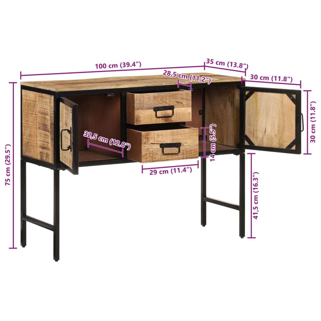 - Material: Lemn de mango brut cu finisaj natural, fier