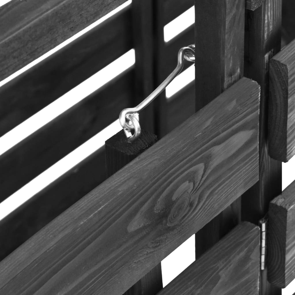 Magazia de depozitare are capace care se pot ridica, pentru un acces ușor la pubelele de depozitare a gunoiului. Are două uși frontale care se deschid individual, astfel încât pubelele pot fi îndepărtate și golite cu ușurință. Este echipată cu încuietori frontale, pentru a menține ușile bine închise. Fabricat din lemn de pin masiv cu finisaj vopsit, acest șopron pentru pubele este foarte robust, durabil și rezistent la putrezire. Acest spațiu de stocare poate adăposti 2 pubele de gunoi de 240 L și se va potrivi frumos decorului dvs. din grădină.