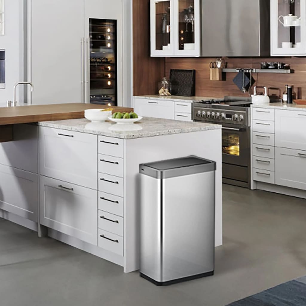 Coșul de gunoi este fabricat din oțel inoxidabil având un strat de protecție împotriva amprentelor. Capacul oferă acces la un suport pentru sacul de gunoi și nu include găleată interioară, ceea ce îl face foarte spațios. Mecanismul senzorului cu afișaj dinamic asigură funcționarea simplă și deschiderea și închiderea automată silențioasă a capacului din plastic. Asigură o utilizare igienică și închide silențios capacul. Mai mult decât atât, sacii de gunoi sunt ușor de schimbat datorită capacului detașabil.