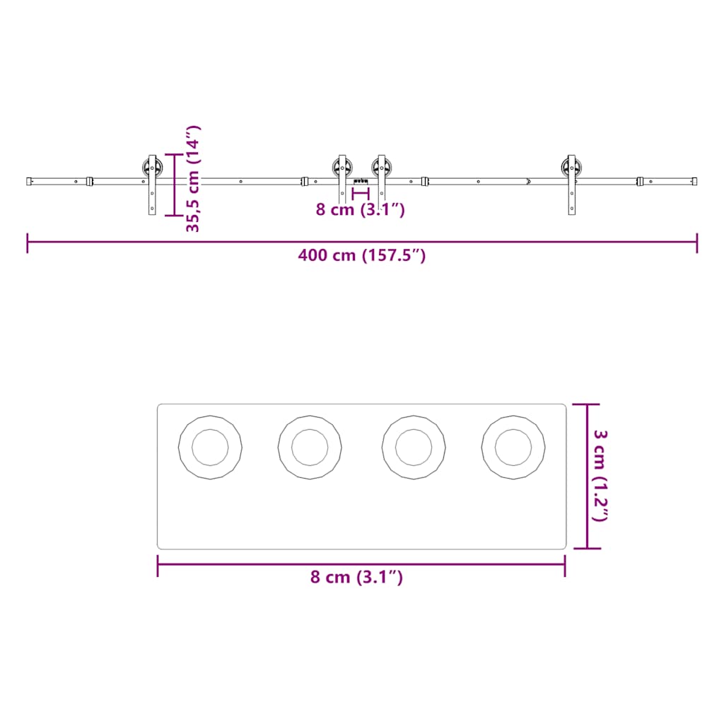 Set Feronerie Pentru Uși Glisante, Negru, 400 Cm, Oțel
