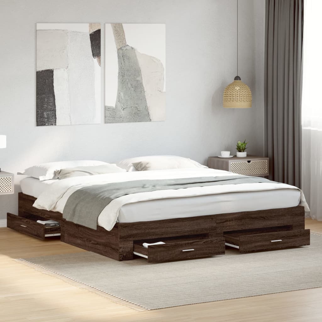 Adăugați o notă modernă dormitorului dvs. cu acest cadru de pat cu sertare! Este un plus practic și decorativ pentru spațiul dvs. de locuit.