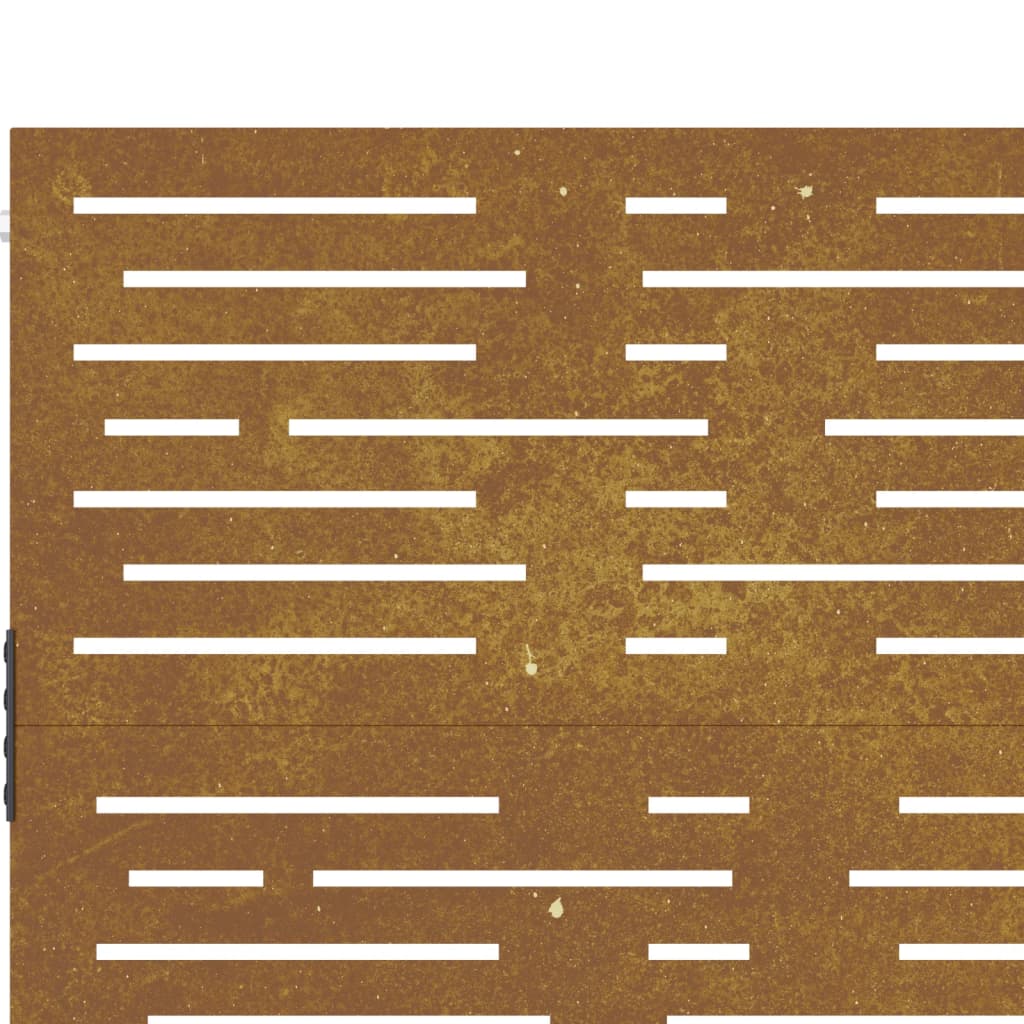 - Material durabil: Această poartă din metal este realizată din oțel corten. Oțelul corten este cunoscut și sub denumirea de oțel rezistent la intemperii. Acesta este anticoroziv prin însăși natura sa. Dezvoltă un strat protector ruginiu împotriva coroziunii, atunci când este expus pentru prima dată la condiții atmosferice. Astfel, nu necesită vopsire. Acest lucru vă poate ajuta să economisiți la costurile de întreținere și reparații. Culoarea maro distinctă a oțelului corten va fi cu siguranță atrăgătoare. În cele din urmă, oțelul rezistent la intemperii este excepțional de durabil și va rezista testului timpului.