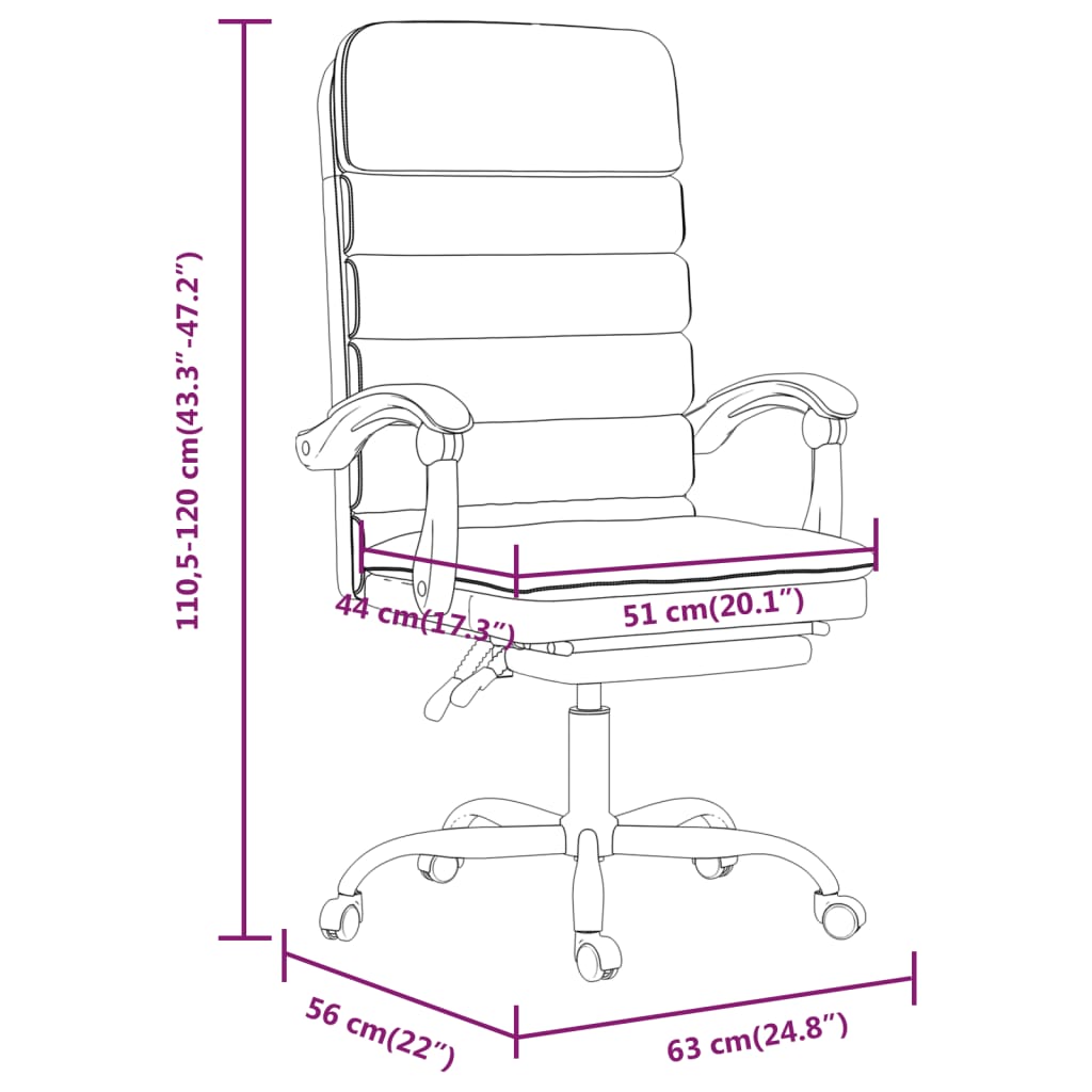 • Dimensiuni în poziția întins: 63 x 128,5 x (98-107,5) cm (l x ad. x î)
