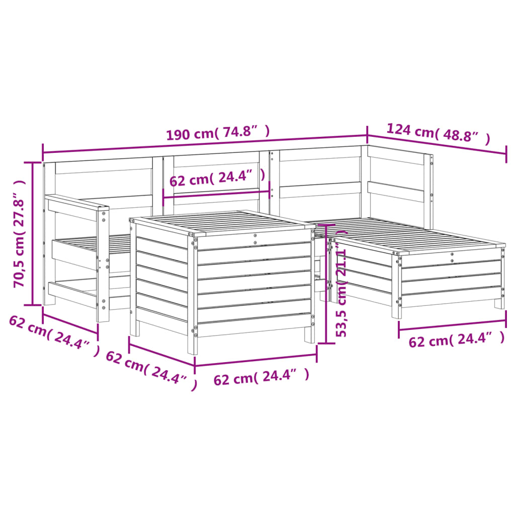 Set Canapea De Grădină, 5 Piese, Lemn De Pin Tratat