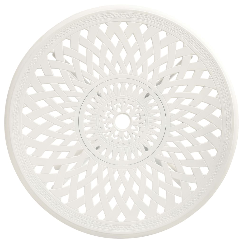 Scaunele și masa de exterior, din aluminiu turnat, sunt rezistente și durabile. Materialul rezistent la rugină și la intemperii, face setul de mobilier ideal pentru utilizare în aer liber. Modelele frumoase fac ca setul de bistro să fie un plus elegant pentru spațiul dvs. de exterior. În plus, măsuța de cafea are un orificiu care poate găzdui perfect umbrela, pentru a vă proteja de soare sau ploaie.
