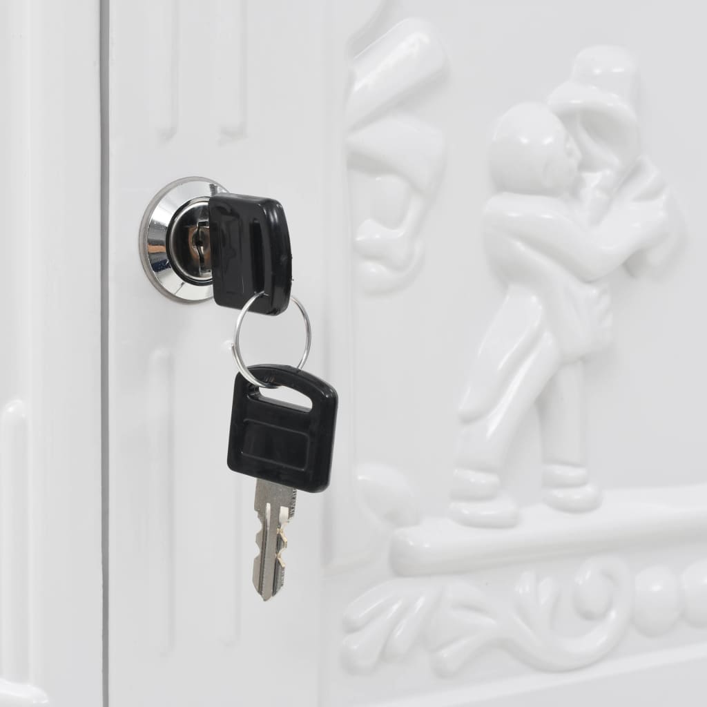 Această cutie poștală este prevăzută cu o fantă mare, pentru introducerea scrisorilor, și o clapă, care are rolul de a proteja interiorul de condițiile meteo nefavorabile. De asemenea, cutia include o ușă ce se poate încuia (sunt incluse și 2 chei), pentru a scoate cu ușurință scrisorile. Cutia poștală este fabricată din aluminiu turnat, rezistent la intemperii și inoxidabil, fiind ideală pentru folosirea în aer liber. În plus, cutia poștală este remarcabilă datorită abundenței de detalii decorative rafinate, în stil vintage, devenind punctul de atracție de pe aleea din grădină sau de la intrarea în casă.
