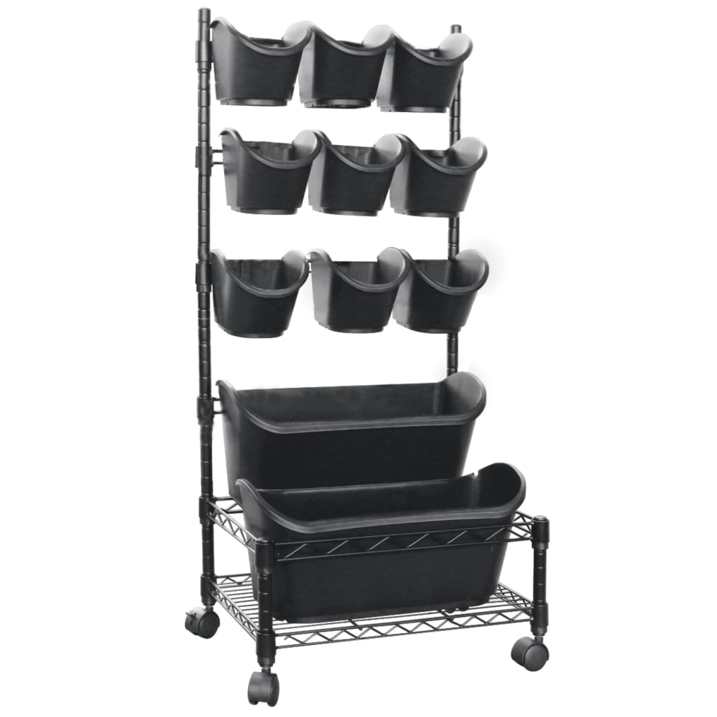 • Set cu ghivece de flori, din 11 piese, cu un cadru mobil pe roți